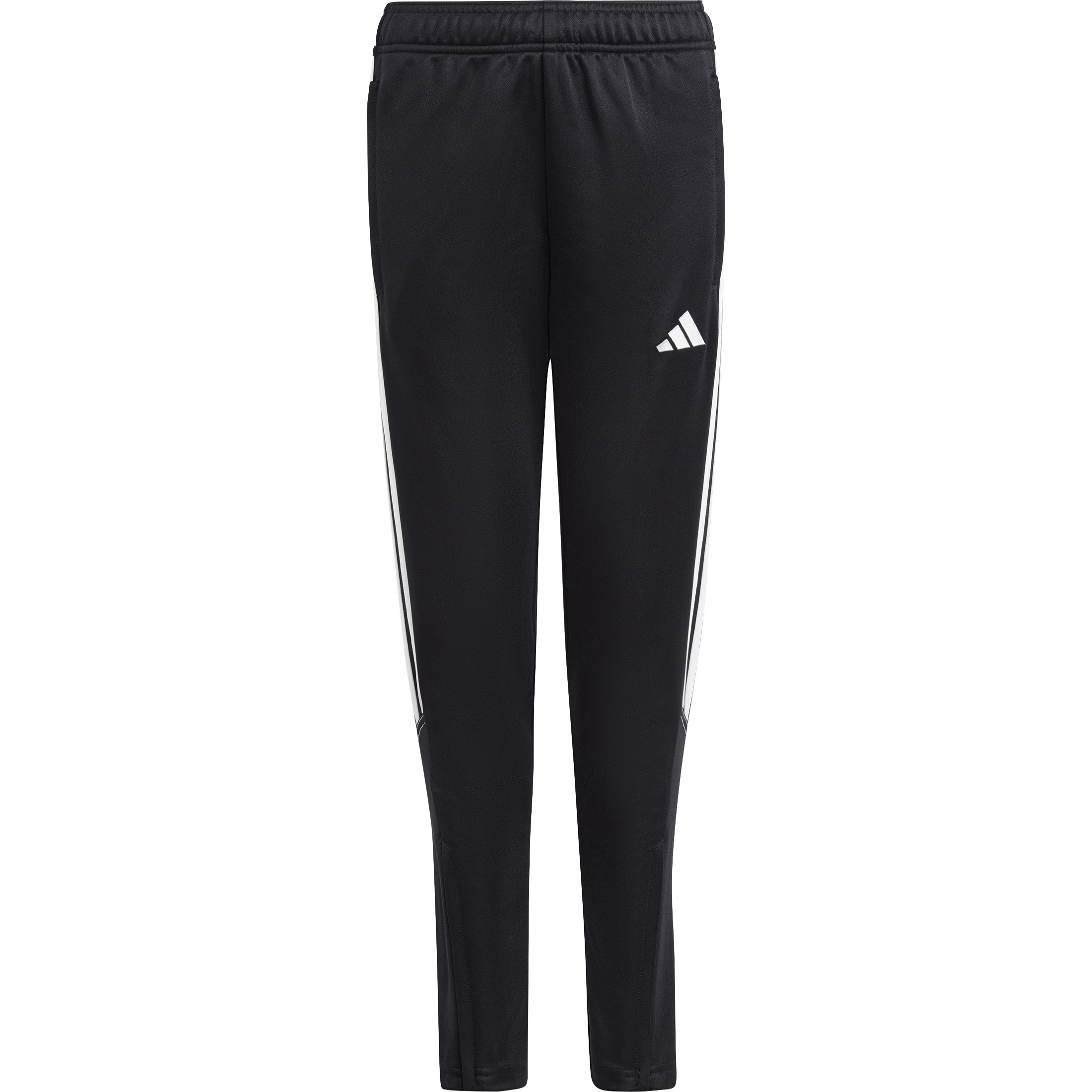 De adidas Tiro 23 Club trainingsbroek voor kinderen heeft een strak design met opvallende strepen. De broek zit comfortabel door de elastische tailleband met trekkoord en de handige zakken maken het mogelijk om persoonlijke spullen mee te nemen. De enkelritsen maken het makkelijk de broek aan en uit te trekken.