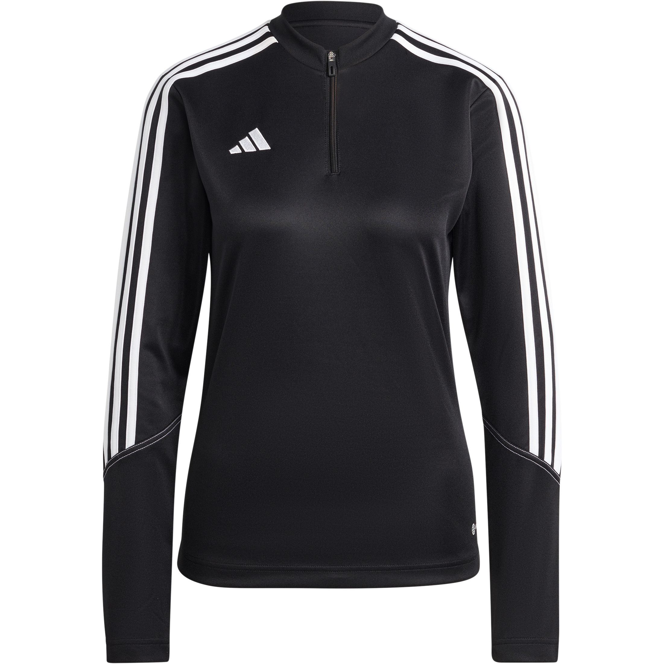 Het adidas Tiro 23 Club trainingsshirt voor dames is een strak model dat het lichaam volgt. De trui houdt u goed warm en met de handige rits, kunt u de trui een beetje door laten luchten. Deze ronde hals biedt meer comfort en de stof is sneldrogend.