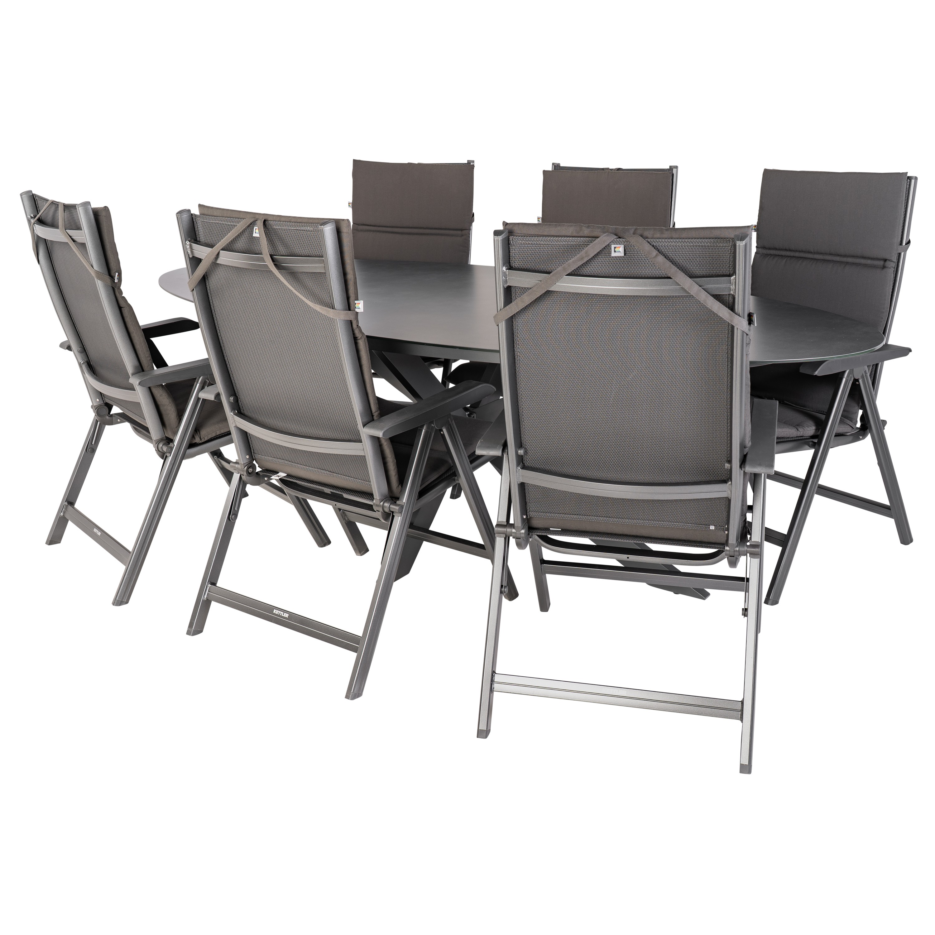 6x Kettler Basic Plus verstelbare tuinstoel antraciet inclusief kussen