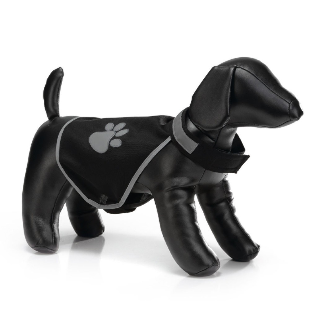 Het Beeztees Safety Gear veiligheidsvest hond zwart M maakt het uitlaten van de hond in het donker extra veilig. Dankzij de reflecterende rand en pootafdruk valt uw hond goed op.