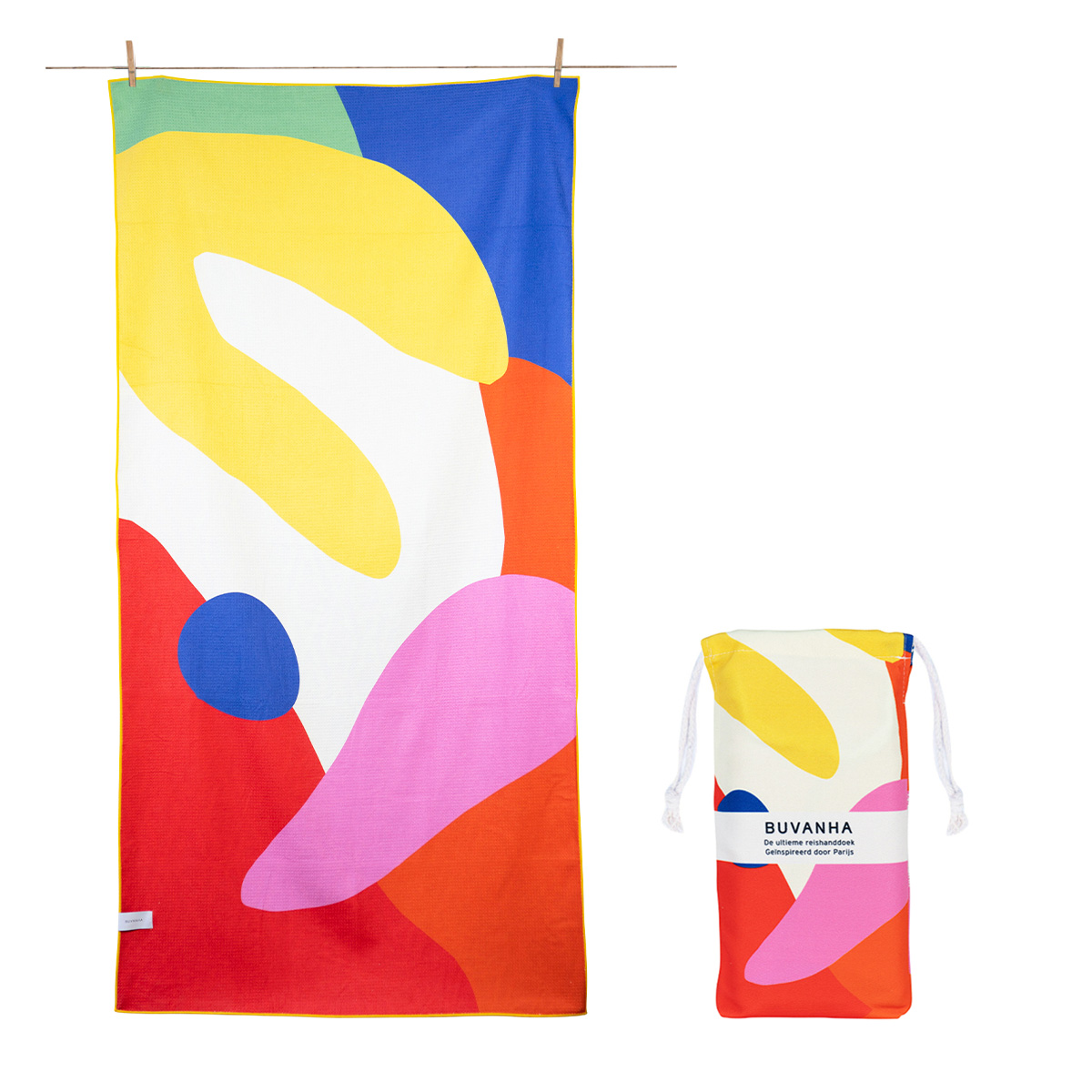 Dit Buvanha Paris 02 strandlaken heeft een vrolijk design en is heel compact. Het tasje is klein en hierdoor is het strandlaken perfect om mee te nemen op vakantie. Het strandlaken droogt snel, neemt 1 liter water op en blijft zandvrij.