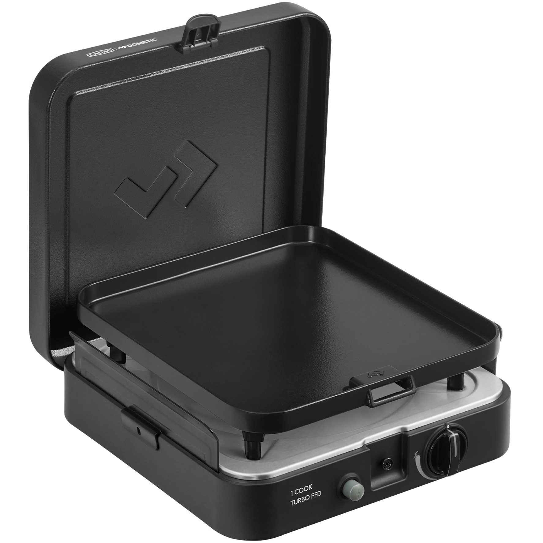 Dit 1 Cook Turbo FFD Flat Plate kooktoestel van Cadac is gemaakt met thermische beveiliging, zodat de gastoevoer automatisch afsluit als de vlam uit gaat. Het toestel is licht in gewicht, neemt weinig ruimte in beslag en komt met een handige opbergtas, waardoor hij ideaal is om mee te nemen tijdens uw kampeerreizen. Dit kooktoestel is inclusief pandrager, bakplaat, percolatorhouder en windschermen.
