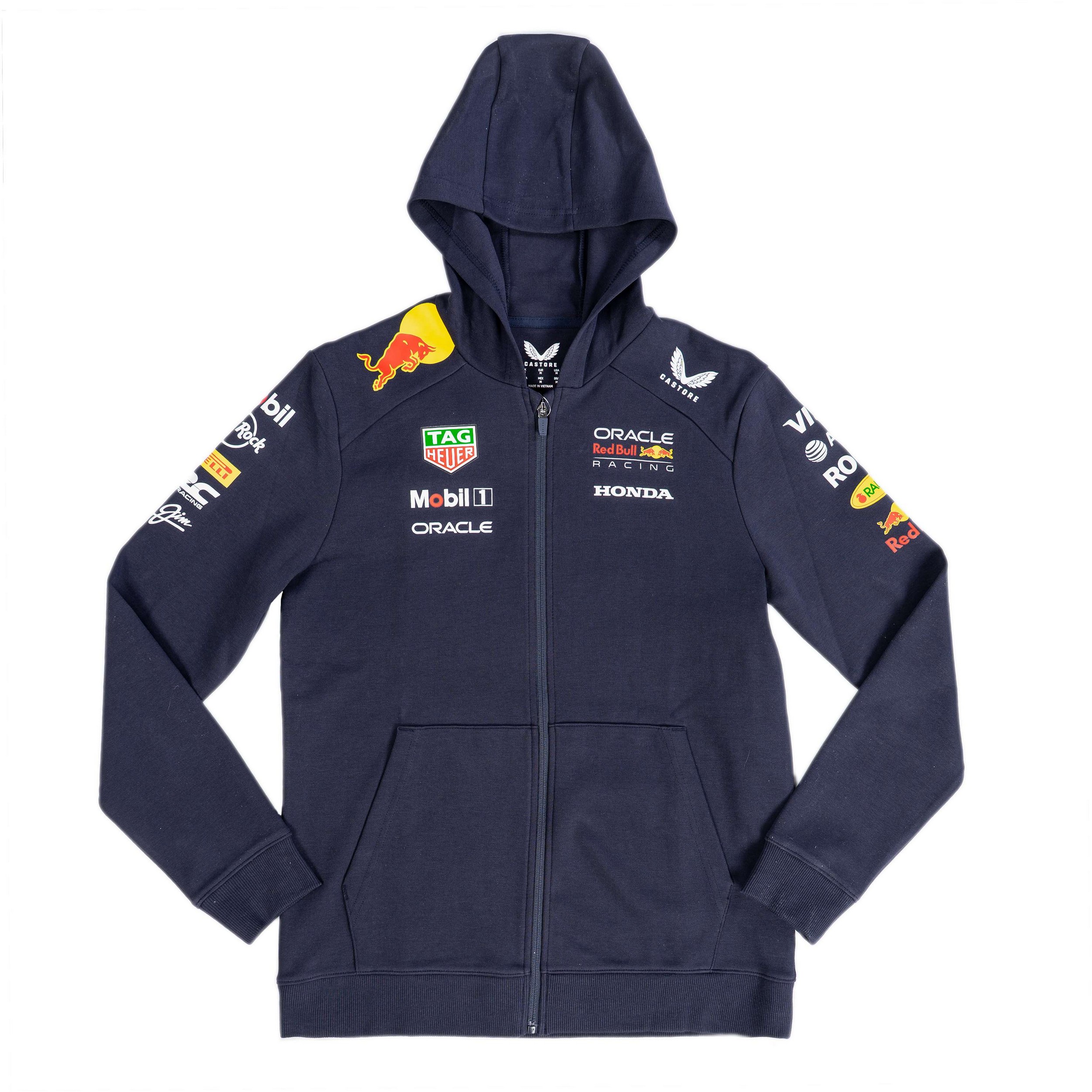 Het Castore Oracle Red Bull Racing vest voor kinderen heeft een normale pasvorm. Het vest is voorzien van een capuchon, ingenaaide schouderpanelen en lange mouwen. De team- en sponsorlogo’s staan op de borst, schouders, mouwen en rug.