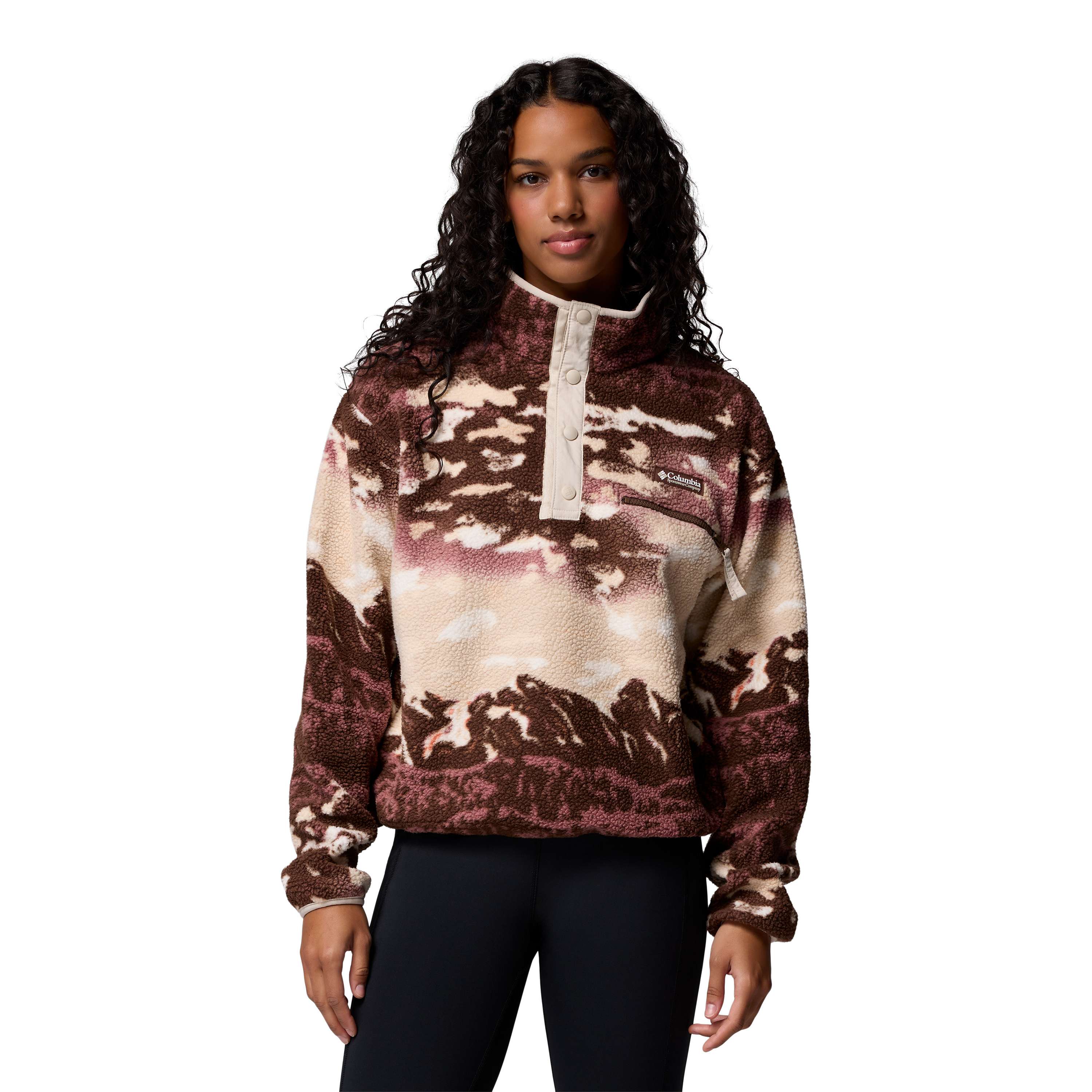 Columbia Helvetia II Printed Cropped Half Snap sweater dames tobacco sisters dark stone
