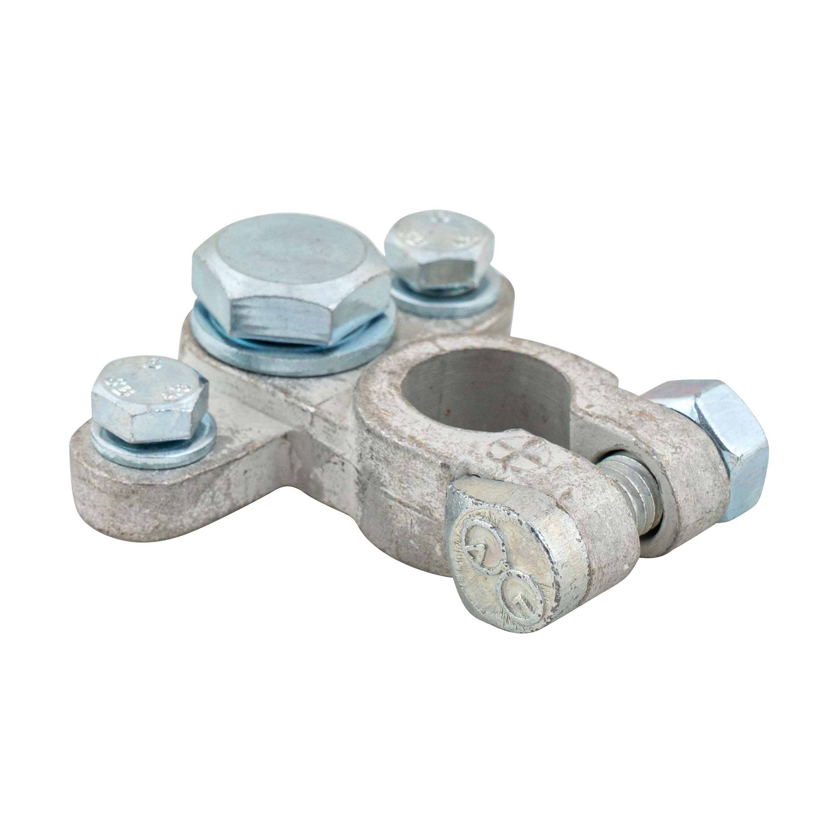 Deze accupoolklem is geschikt om een accukabel aan te sluiten, voorzien van een M10 perskabeloog van 10 mm. Daarnaast biedt de klem de mogelijkheid om meerdere accukabels (tot wel 4 stuks) te verbinden met M6 perskabelogen.
