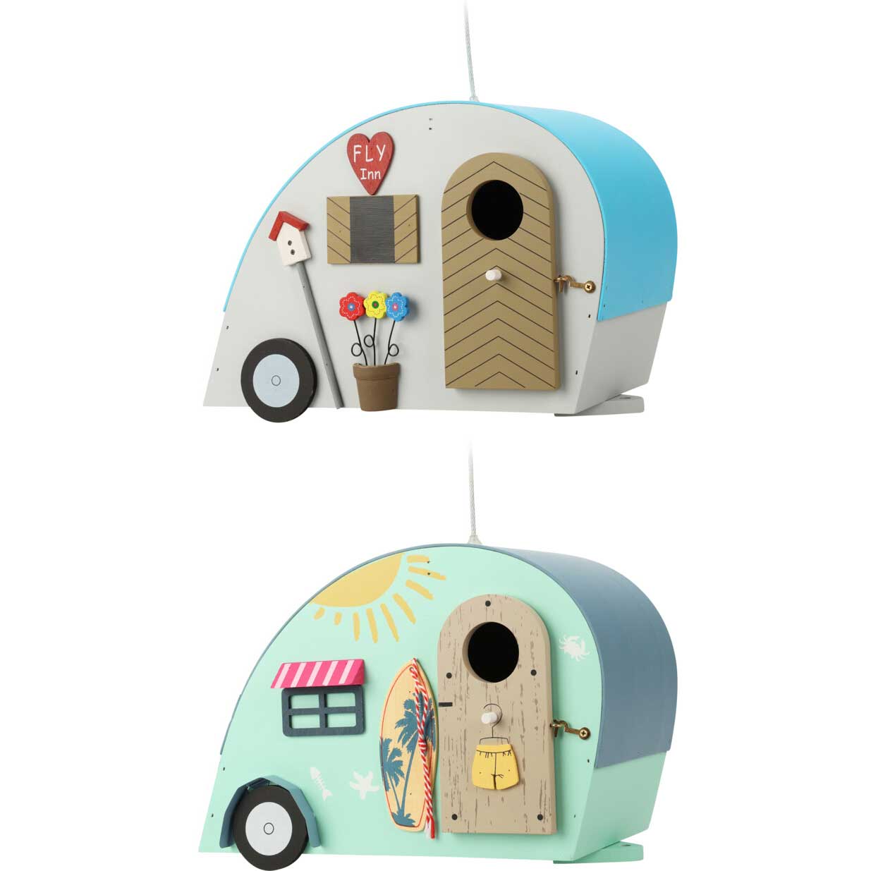 Dit charmante vogelhuisje in de vorm van een caravan, is gemaakt van duurzaam hout en metaal. Het biedt een knusse en warme schuilplaats voor kleine vogels. Hang dit nestkastje op voor de vogels waardoor ze 's nachts beschermd zijn tegen regen, wind en kou.
