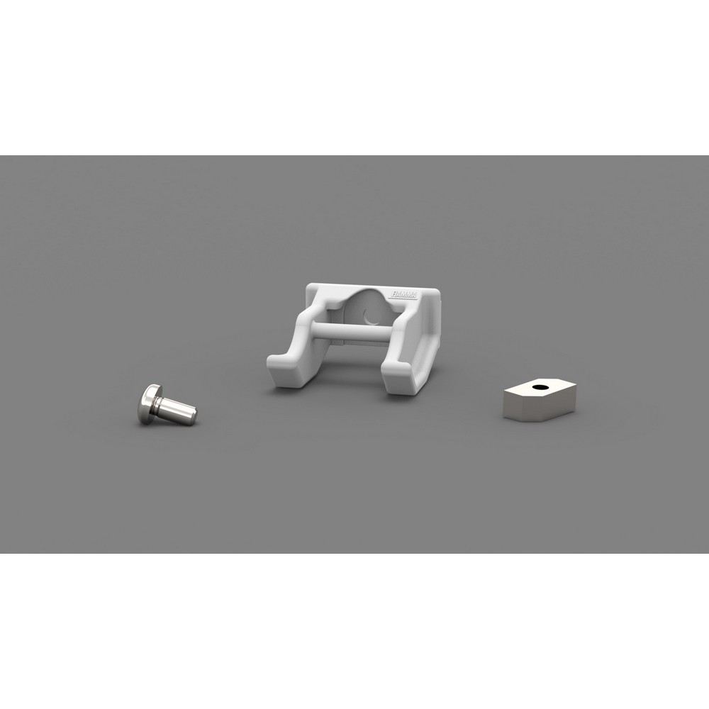 Met de Fiamma F45s F45L Rafter voorlat bevestiging kunt u de rafter bevestigen aan de voorbox. Hierdoor wordt de rafter vastgezet, zodat deze het doek goed kan spannen. Dit onderdeel dient als reserve-onderdeel.