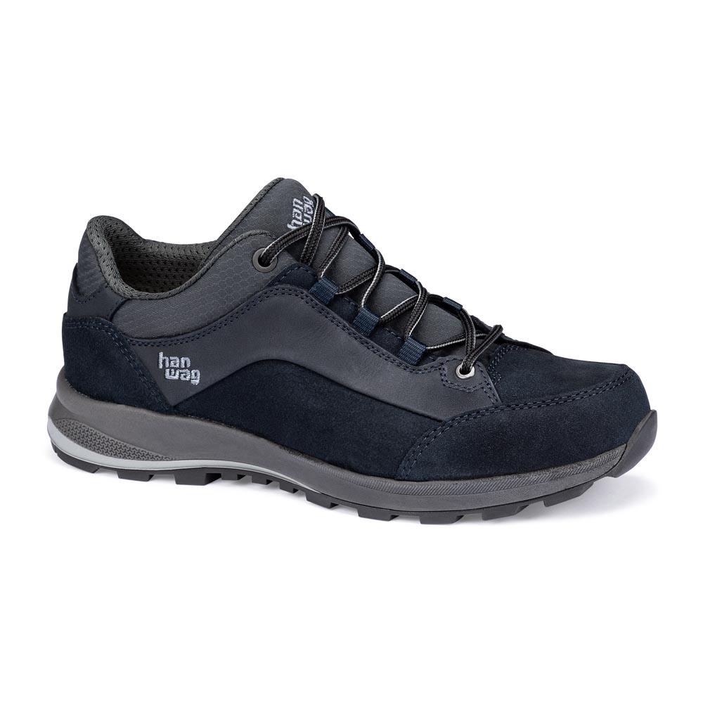De Hanwag Banks Low Bunion Lady LL wandelschoenen voor dames in de kleur navy asphalt is speciaal gemaakt voor mensen die last hebben van een hallux valgus. Deze Hanwag wandelschoenen hebben een speciale leest die extra plaats biedt aan de grote teen. Het robuuste bovenwerk bestaat uit een mix van nubuck, suède en textiel. De verstevigende stroken in het middenvoetbereik zorgen voor een verbeterde stabiliteit. Het binnenwerk is van leer gemaakt en zorgt daardoor voor een prettig klimaat in de schoenen. Verder zijn deze outdoorschoenen voorzien van een lichte en goed dempende Hanwag zool.
