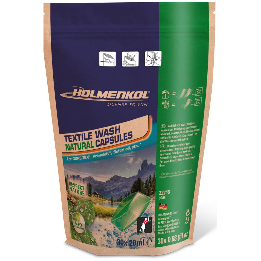 De Holmenkol Natural Wash wasmiddel zijn 30 oplosbare capsules met een inhoud van 20 milliliter. Deze Holmenkol wasmiddelcapsules lossen op, zelfs op lage temperaturen. De capsules voorkomen de vorming van onaangename geuren. De capsules zijn zeer geschikt om hoogwaardige functionele textielsoorten mee schoon te maken.
