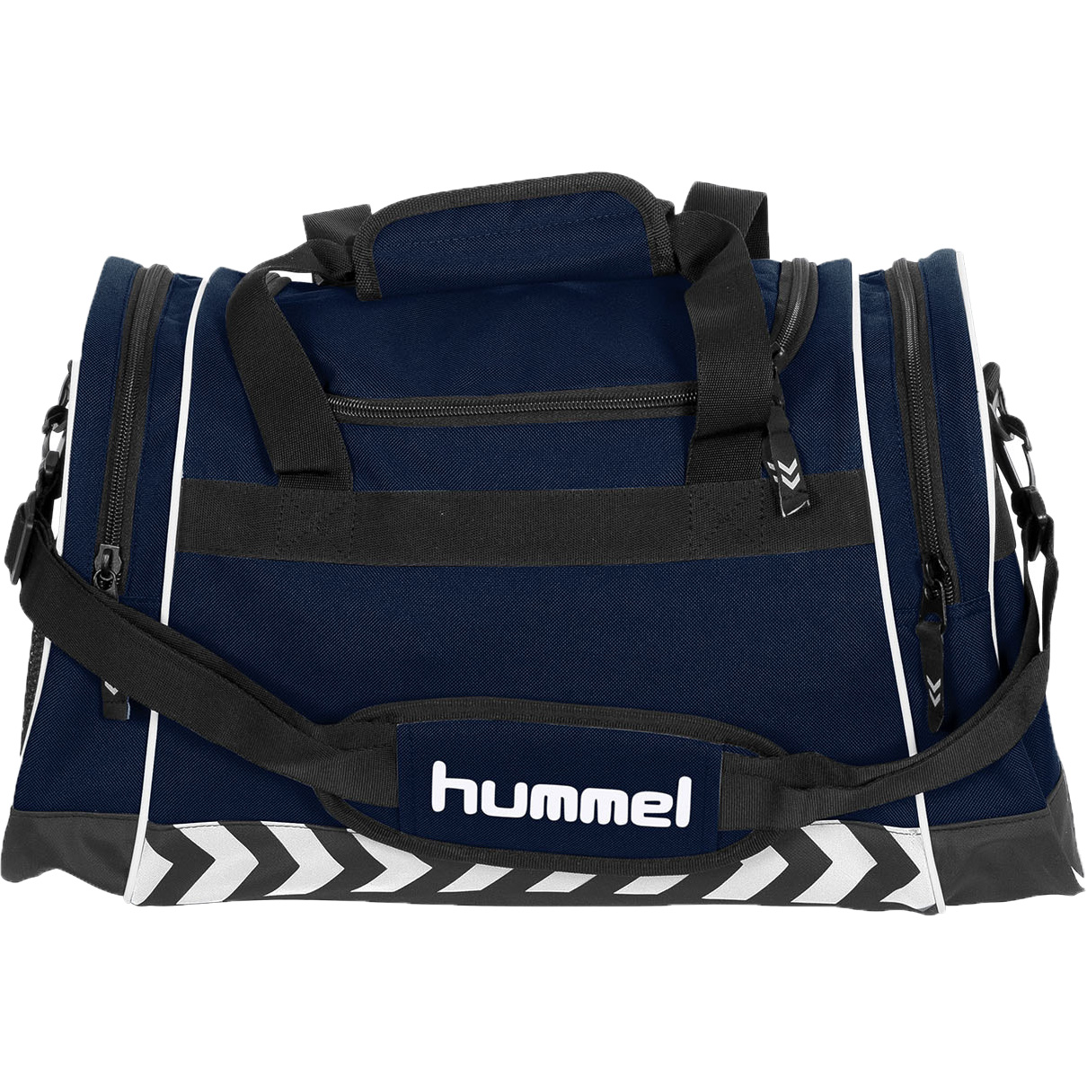 Met deze Hummel Sheffield sporttas kunt u al uw sportspullen meenemen die u nodig heeft. Het ruime binnenvak is makkelijk te vullen dankzij de ruime U-vormige ritsopening. Aan de zijkant zijn nog twee vakken aanwezig voor kleinere spullen. De verstelbare schouderband heeft een gewatteerd stuk, voor meer draagcomfort. De polyester tas is stevig en aan de onderzijde zijn er pootjes die de tas aan de onderkant beschermen.