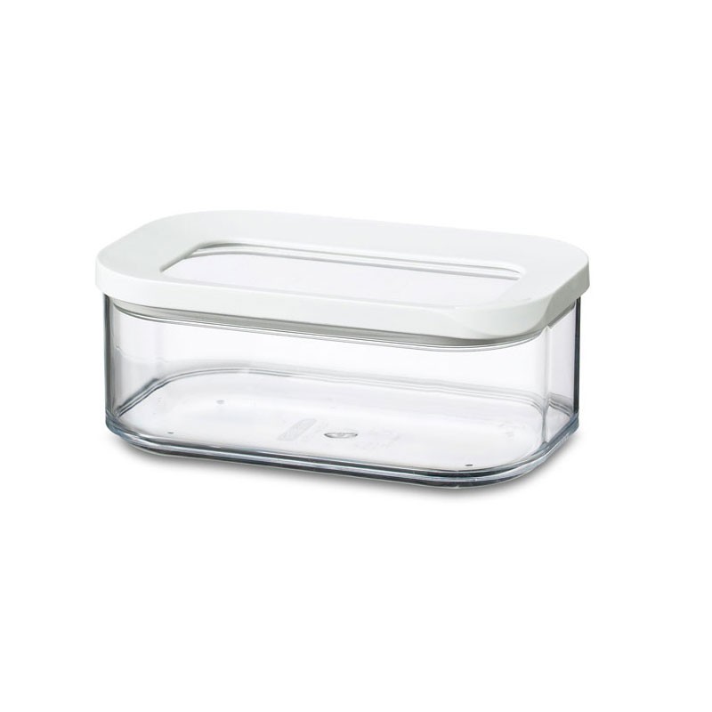 De Modula kunststof bewaardozen van Mepal zijn stapelbaar, stabiel en geschikt voor het bovenste rek van de vaatwasser. De Modula bewaardozen sluiten aroma dicht af dankzij de aparte afdichting. Deze rechthoekige voorraaddoos heeft een inhoud van 425 milliliter. Handig voor het bewaren van etenswaren. De Modula bewaardoos is bovendien vaatwasserbestendig.