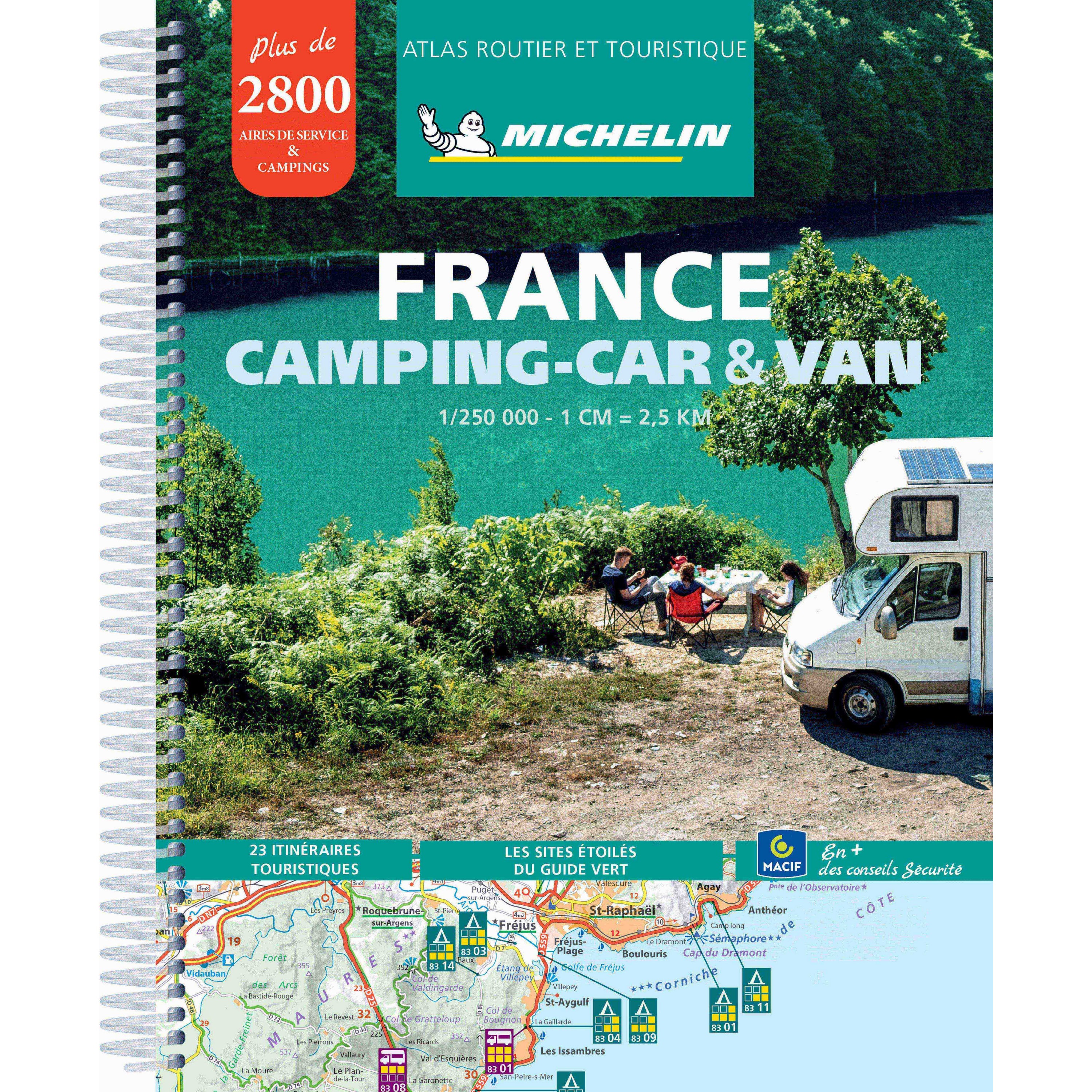 De Michelin Frankrijk Camping-Car & Van wegenkaart is een gedetailleerde atlas met een schaal van 1 : 250.000. Deze wegenkaart van Michelin laat het complete wegennetwerk van Frankrijk zien in ringband-formaat. Daarnaast worden er meer dan 2000 camping en serviceplekken aangegeven en kort beschreven die geschikt zijn voor campers. Bovendien bevat deze wegenatlas 40 stadsplattegronden.