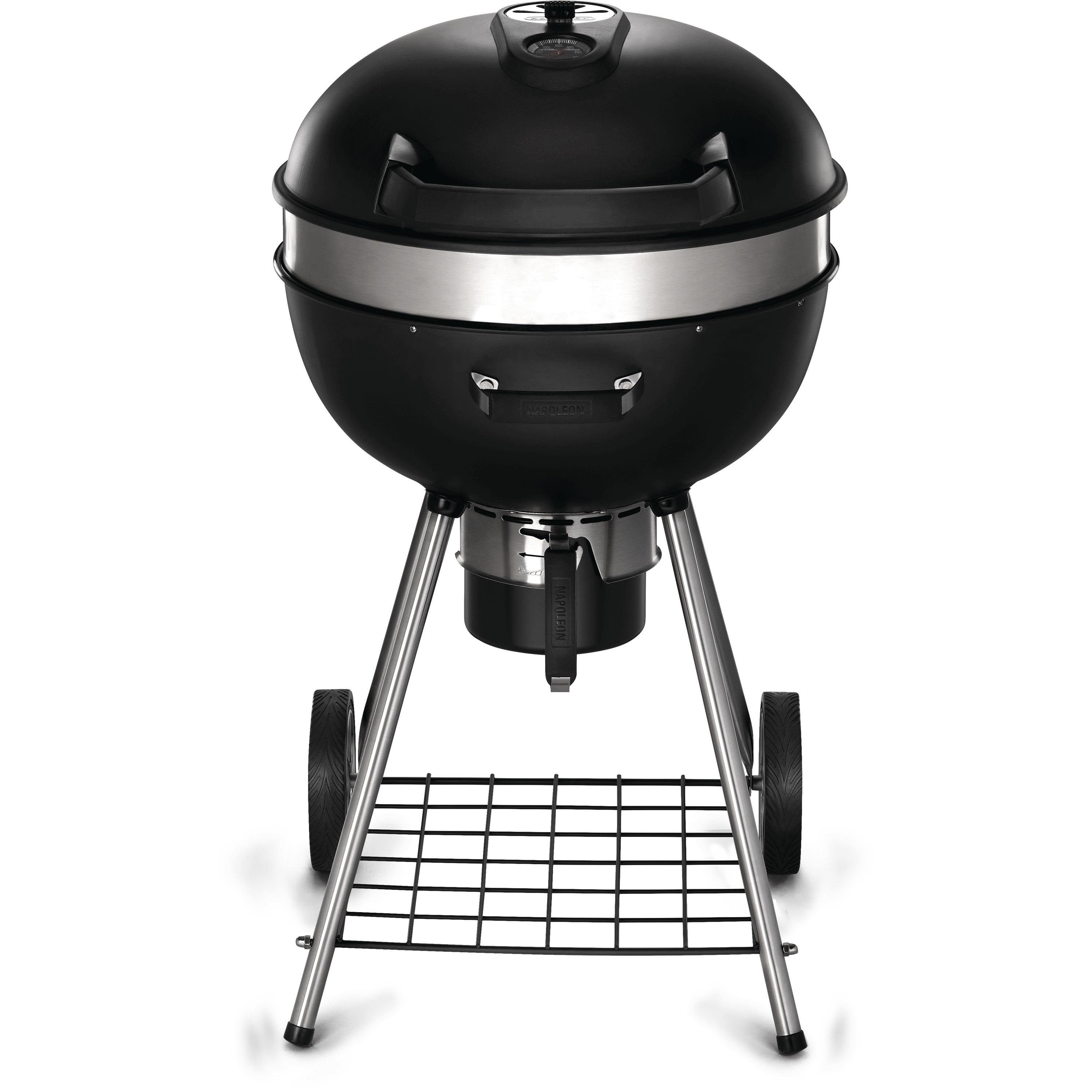 De Napoleon Pro houtskoolbarbecue voorzien van een geoptimaliseerd luchtsysteem, waardoor de barbecue op zowel zeer hoge als zeer lage temperaturen kan werken. Deze Napoleon barbecue heeft een geëmailleerde gietijzeren grillrooster die in drie hoogtes verstelbaar is. Dit zorgt voor zowel een langdurige als gelijkmatige warmteverdeling. De barbecue komt inclusief diffuser plate en houtskoolring wordt het zeer eenvoudig om een indirecte hitte-zone te creëren en waardoor ook direct het brandstofverbruik kan worden geminimaliseerd. Door de Accu Probe deksel thermometer kunt u eenvoudig de temperatuur aflezen. U bent met deze barbecue verzekerd van uitmuntende stabiliteit en werkhoogte door de vier poten.