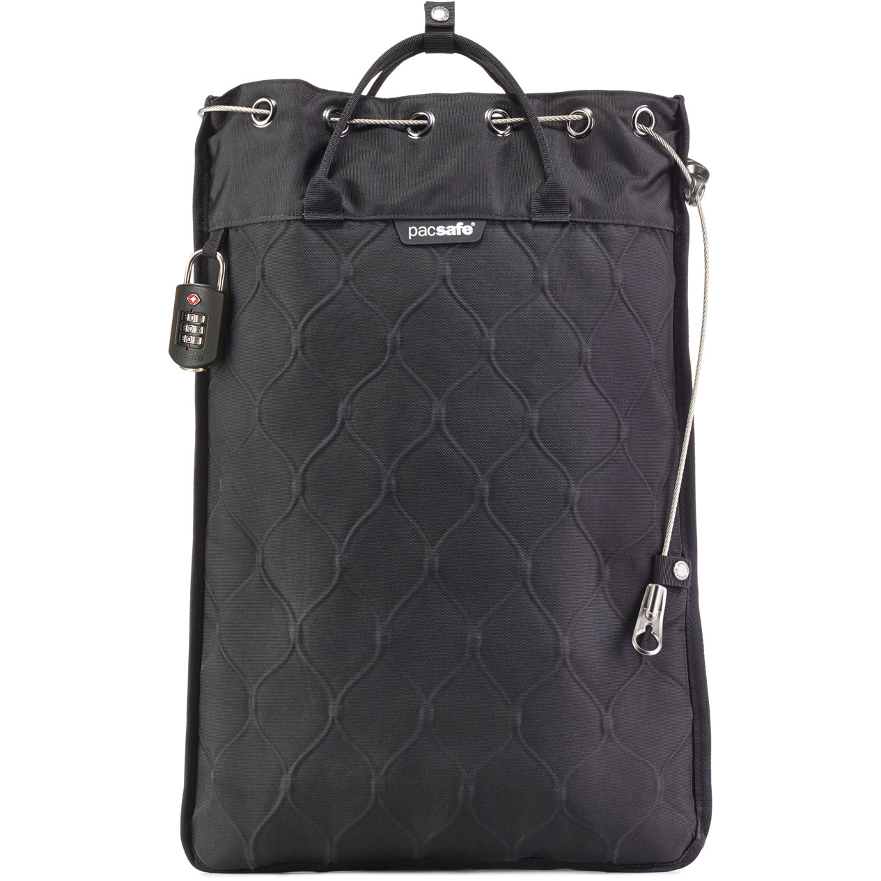 Bescherm uw technologie en andere waardevolle bezittingen met de Pacsafe Travelsafe 12L GII documententas black. Deze draagbare ‘kluis’ van 12 liter bevat 360° wire eXomesh technologie en een roestvrijstalen vergrendelingskabel. De snijbestendige ankerriem vergrendelt u rond een vast object om uw tas vast te kunnen leggen en te beschermen. Inclusief een Travel Sentry goedgekeurd cijferslot.