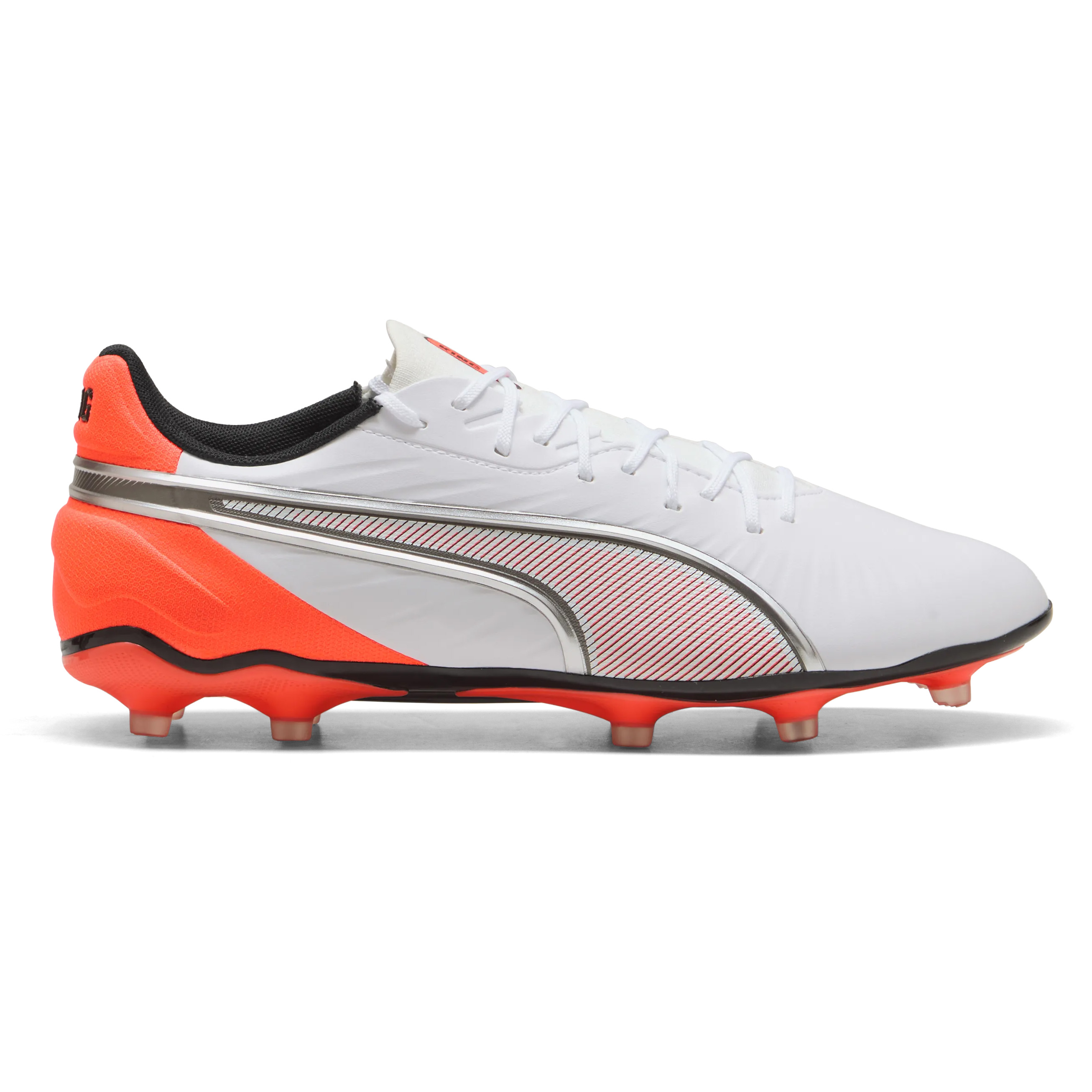 De Puma King Match FG – AG voetbalschoenen hebben een zacht, synthetisch bovenwerk dat zorgt voor optimale balcontrole. De TPU buitenzool met conische noppen biedt een stabiel en beter gevoel tijdens het spel.