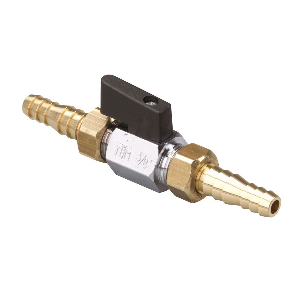 De messing kogelkraan van Reich heeft een slangtule van Ø 10-12 mm en twee binnendraden van 3/8”. Voorzien van een grote draaiknop waardoor de watertoevoer eenvoudig te regelen is.