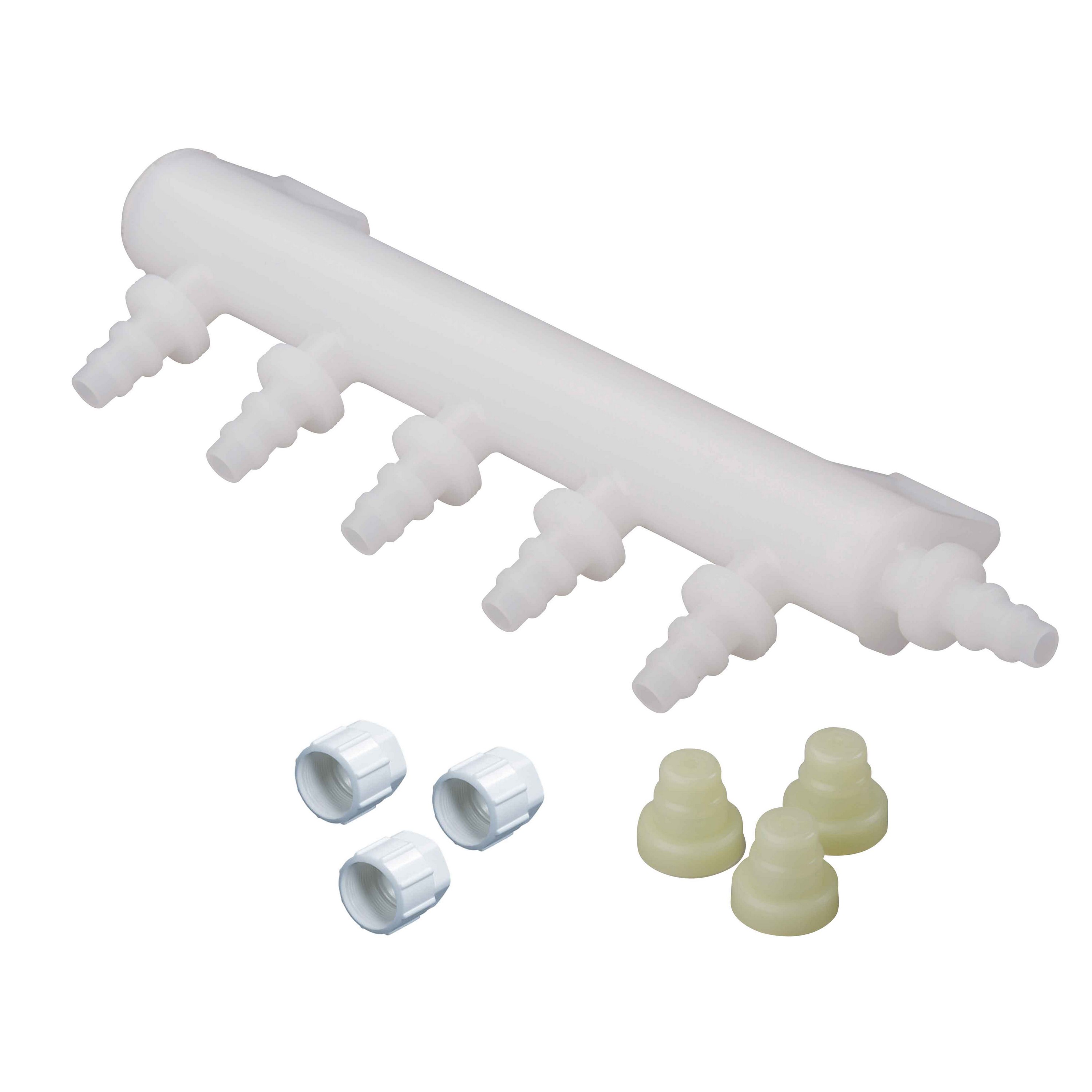 Met de waterverdeler van Reich kunnen verschillende slangen aan de watertank gekoppeld worden. Een handige oplossing om snel en eenvoudig slangen los te koppelen. De waterverdeler voor vers water wordt met één slang aan de watertank bevestigd. Door de vijf uitgangen kunnen verschillende apparaten bevestigd worden. Bij de verdeler worden drie afdekdopjes en drie moeren geleverd, zodat de uitgangen dichtgezet kunnen worden indien deze niet allemaal gebruikt worden en met de moeren zitten de afdekdopjes goed vast. De waterverdeler is alleen voor schoon water.
