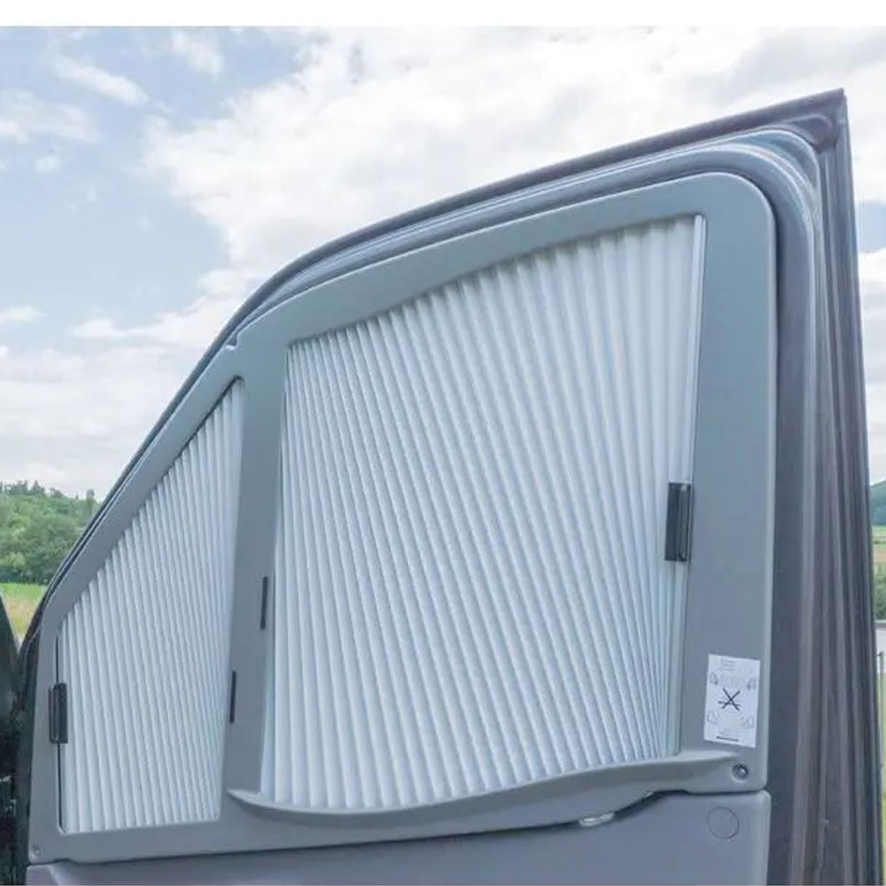Het Remis Remifront 3 zijpaneel past perfect bij het rechterraam van zowel de Mercedes Sprinter 2006-2018 als de Volkswagen Crafter 2006-2016. Het paneel is voorzien van een geplisseerd ontwerp en stevig aluminium frame. Bovendien zorgt het voor verkoeling in de zomer en verbeterde isolatie in de winter. Voor volledige duisternis in de cabine is het noodzakelijk om zowel het voorpaneel als het linker zijpaneel apart aan te schaffen.