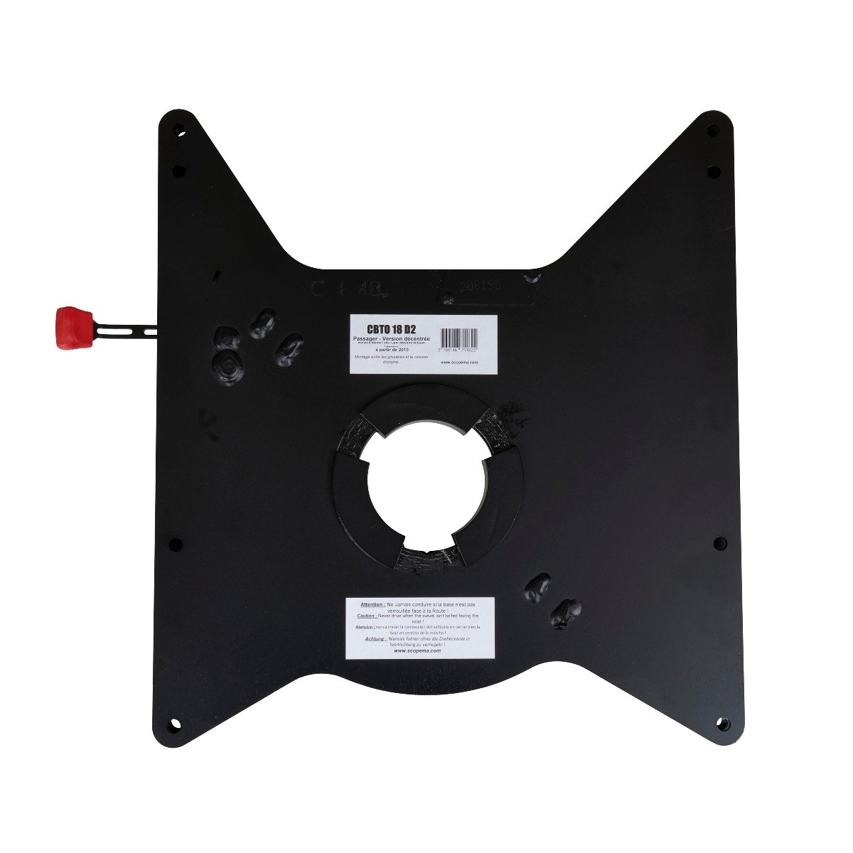Dit Scopema draaiplateau is geschikt voor de bijrijdersstoel van de Renault Master X62 de Opel Movano en de Nissan NV400 voor de modellen vanaf 2010. Op het draaiplateau van Scopema zit een hendel. Met deze hendel kunt u de stoel eenvoudig los klikken om hem naar het leefgedeelte van het voertuig te draaien. Als u terug draait klikt het draaiplateau zichzelf weer vast.