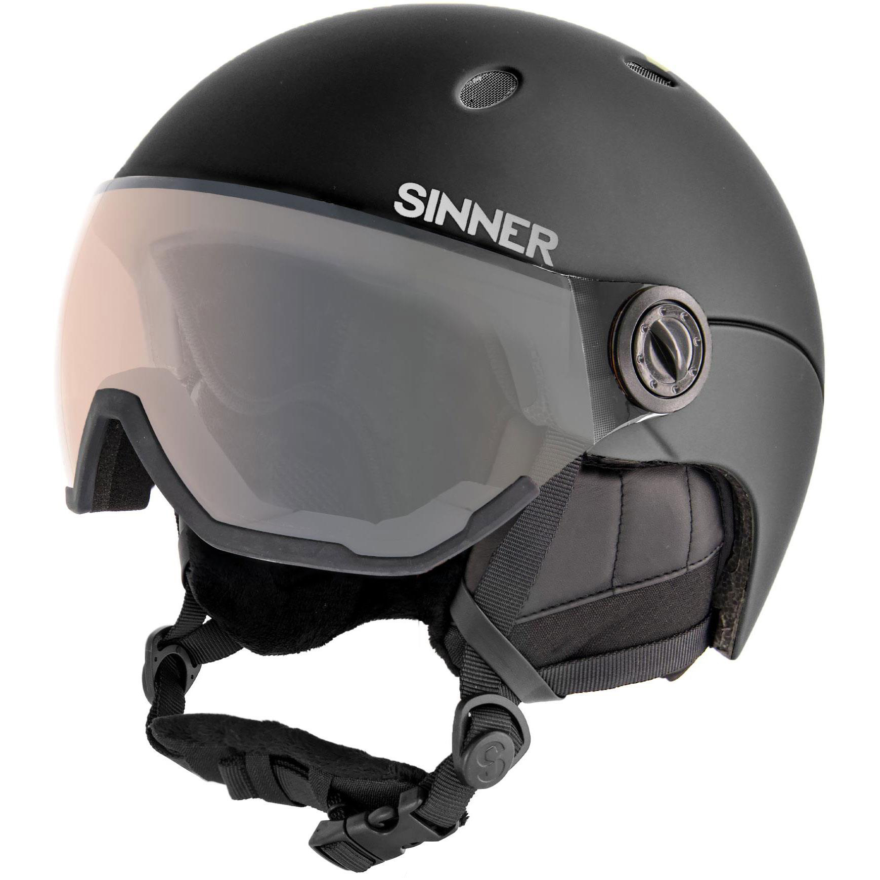 De SINNER TITAN VISOR skihelm is geschikt als u een bril met sterkte draagt. De vizierhelm is voorzien van een meekleurende spiegellens met 100% UV-bescherming en anti-fog behandeling. U kunt de rubberen hoesjes bij de voering verwijderen voor optimale ventilatie.