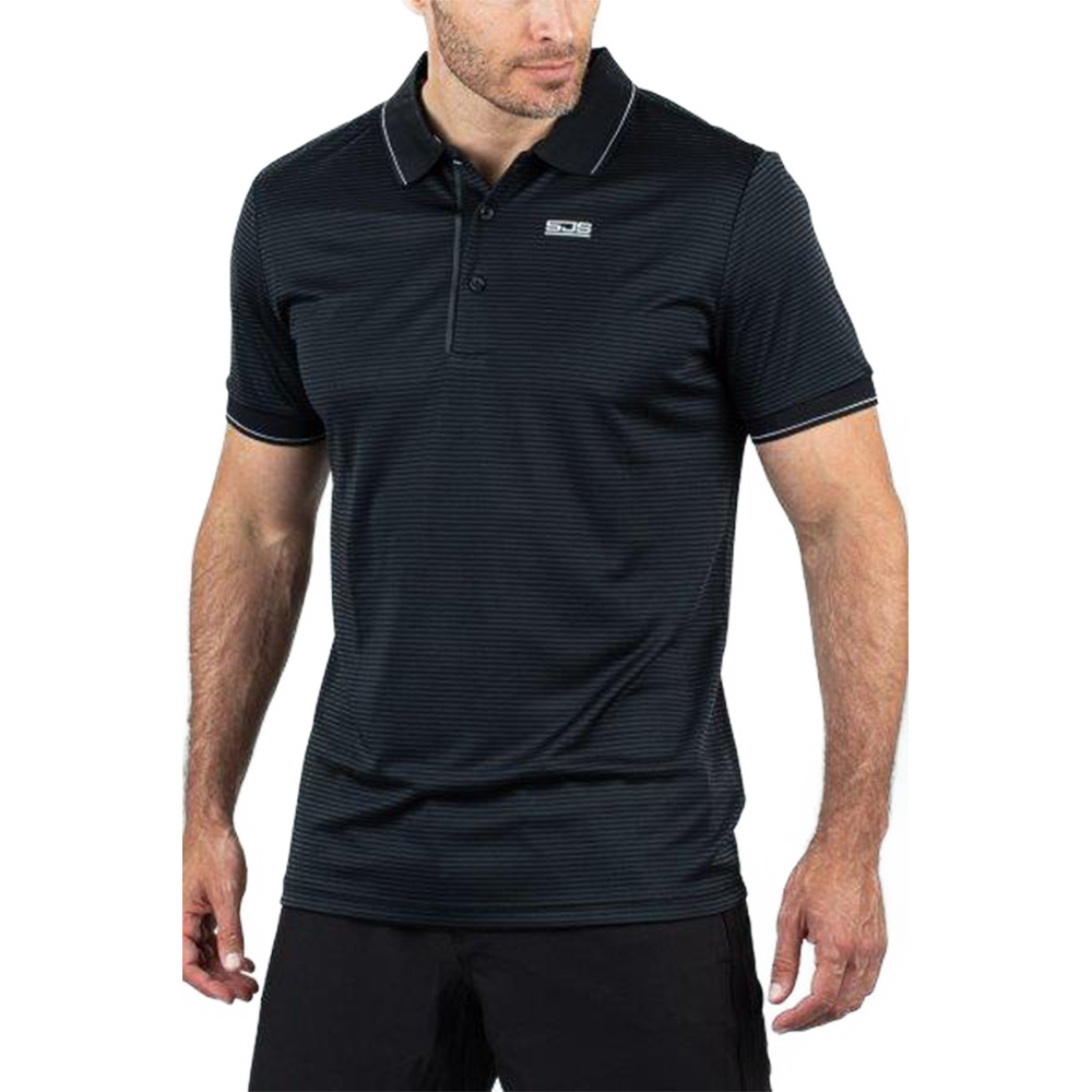 De Sjeng Sports Grand polo voor heren is geschikt voor elk seizoen en is voorzien van twee kleuren in een subtiel streeppatroon. De polo heeft een kraagje met drie knoopjes en korte mouwen.