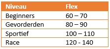 Let wel op dat de flex per merk wellicht kan verschillen. Staar je hier dus niet blind op! Laat je goed adviseren, zeker als beginneling.