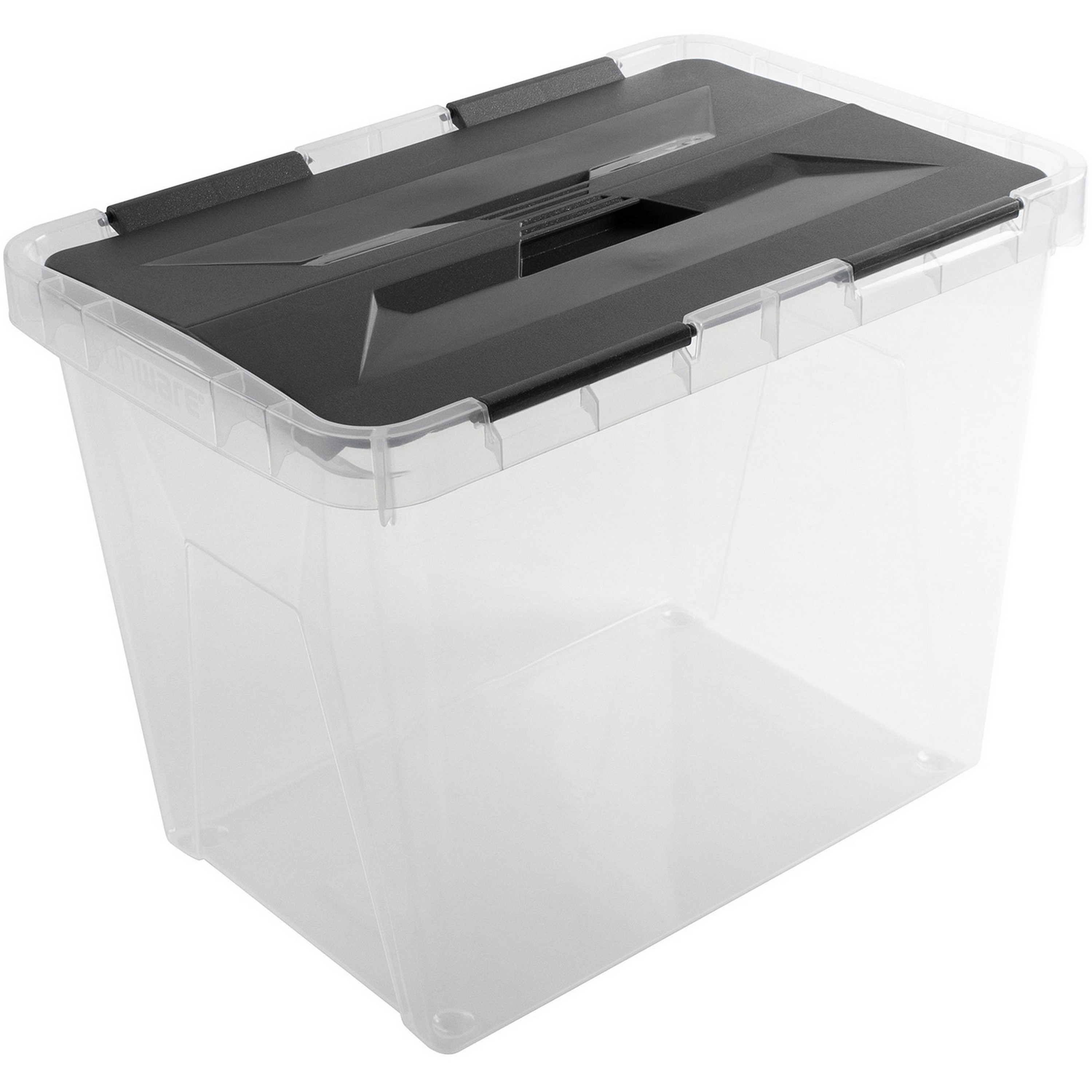 Strak, stevig en klaar voor actie! De Sunware Onyx opbergbox van 15 liter in transparant antraciet houdt uw huis overzichtelijk en netjes.