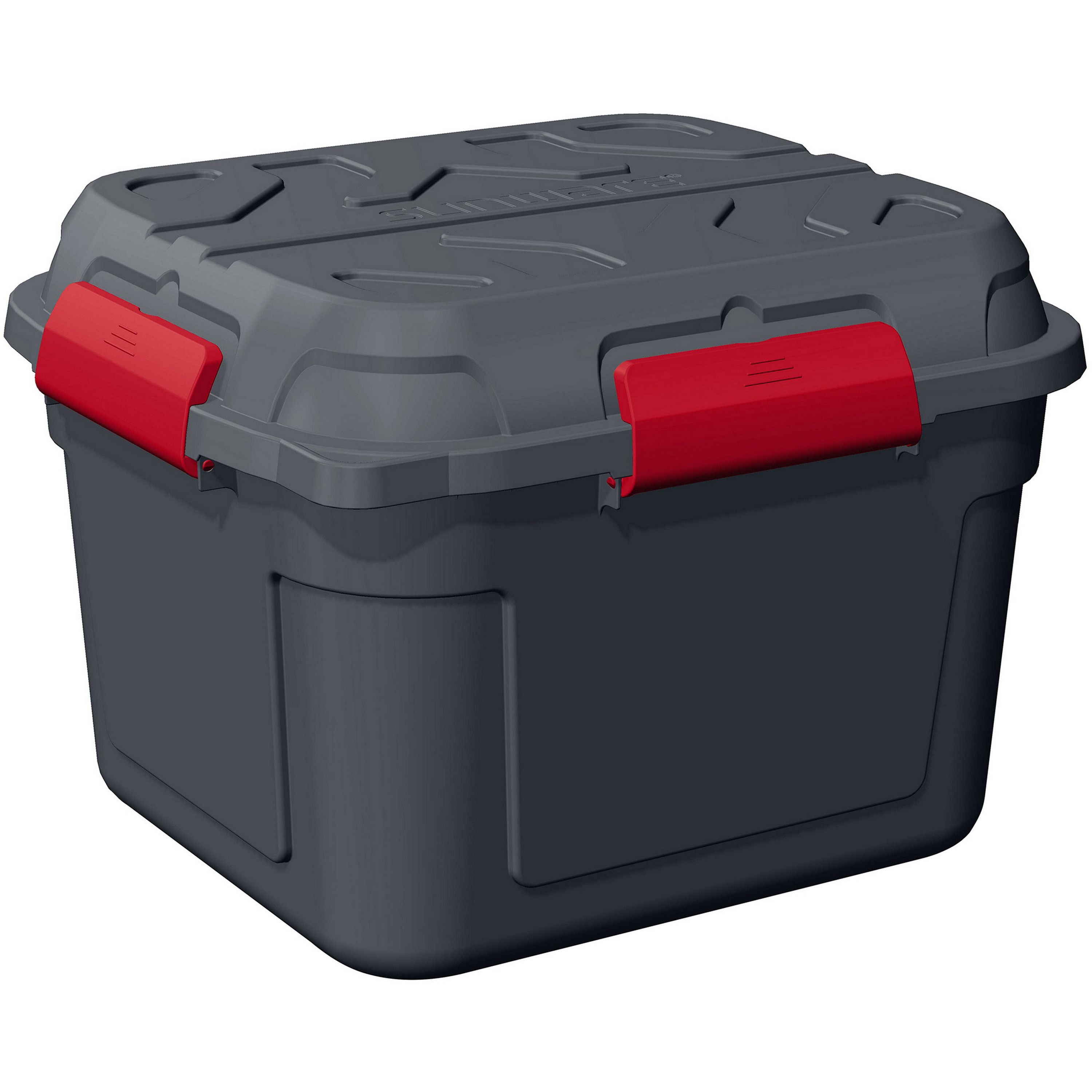 De Sunware Q-line opbergbox van 90 liter in antraciet met rood is sterk, waterdicht en ruim. Ideaal voor gereedschap, kampeerspullen of speelgoed!
