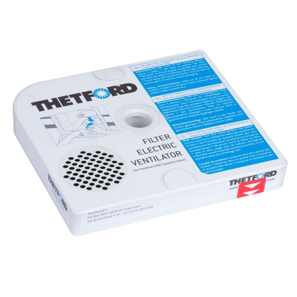 Het ventilator filter van Thetford voor het C260 cassettetoilet zorgt voor een effectieve afvoer van nare luchtjes. Het eenvoudig vervangbare filter behoudt zijn werking gedurende vier weken bij continu gebruik.