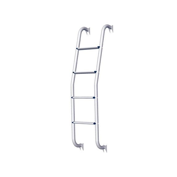 Geanodiseerd aluminium ladder met 4 treden voor gebruik achterop bijvoorbeeld een bestelbus. De ladder heeft een licht gebogen ontwerp.