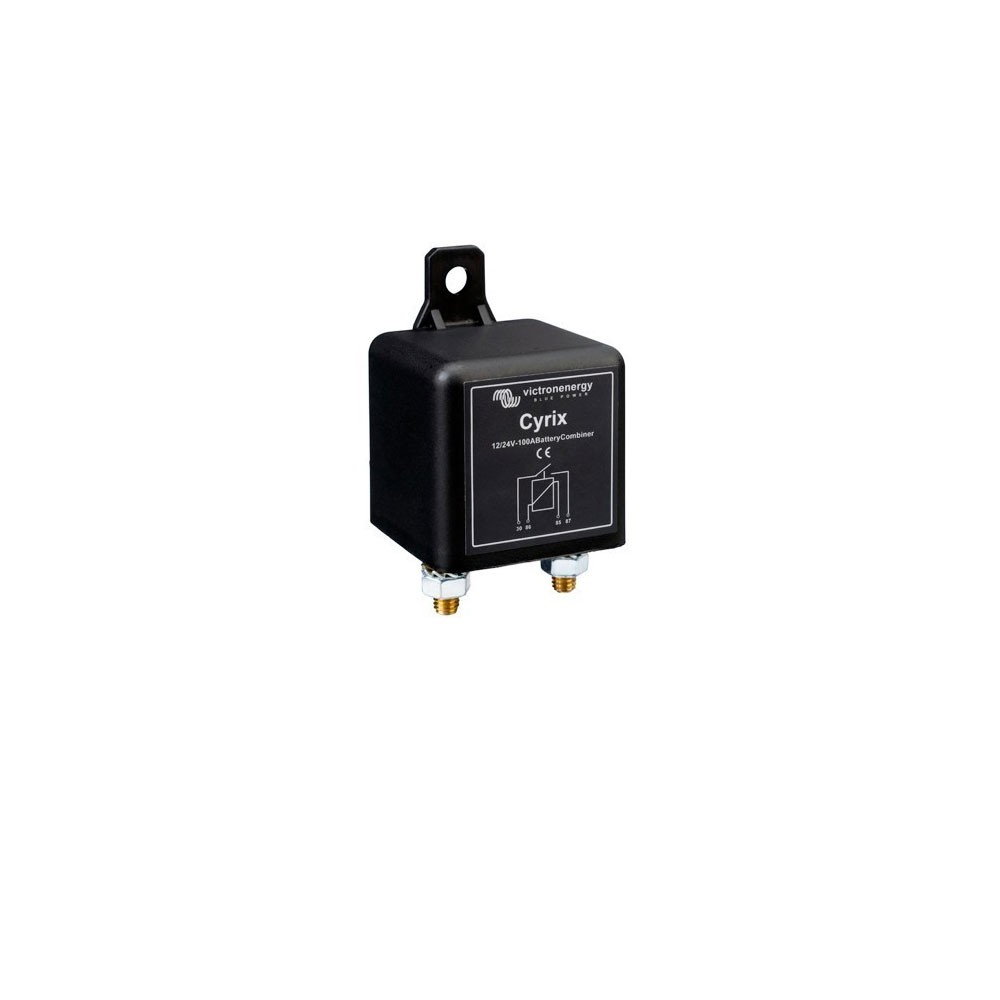Het Cyrix-ct scheidingsrelais van Victron Energy is een intelligente accuscheider met microprocessor. Het relais koppelt accu's automatisch parallel als één van de accu's geladen wordt. Als de spanning daalt, doordat de accu niet langer geladen wordt, worden de accu's weer van elkaar losgekoppeld. Het Cyrix-ct relais is een uitstekend alternatief voor bijvoorbeeld een diodebrug.