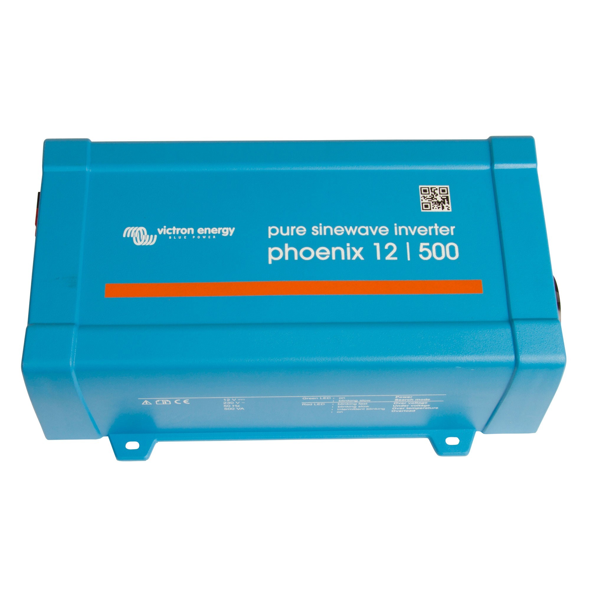 Met de Phoenix 12V/500VA inverter van Victron Energy kunt u eenvoudig een aansluiting van 12 volt omzetten naar het 230 volt stroomnet. Deze omvormer wordt geleverd zonder aansluitkabels geleverd.