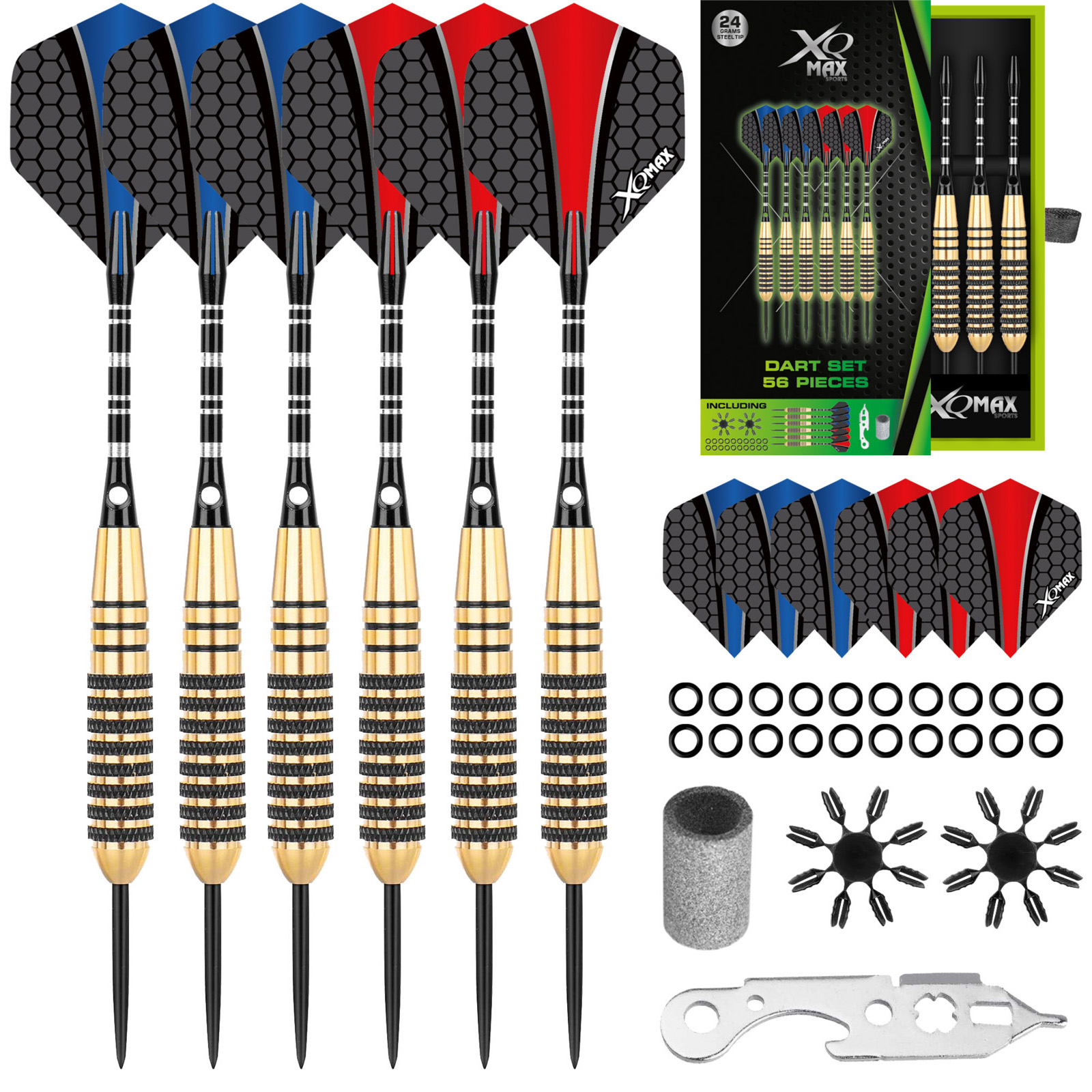 Met de verschillende onderdelen uit deze XQ Max QD8201450 dartpijlen set vormt u uw dartpijlen. Daarnaast zitten er diverse accessoires bij zoals beschermers voor uw flights, zodat u ze veilig kunt opbergen en meenemen. Ook kunt u de dartpijlen steeds bijslijpen met de dartpijlslijper, zodat de pijlen moeiteloos het bord in vliegen.